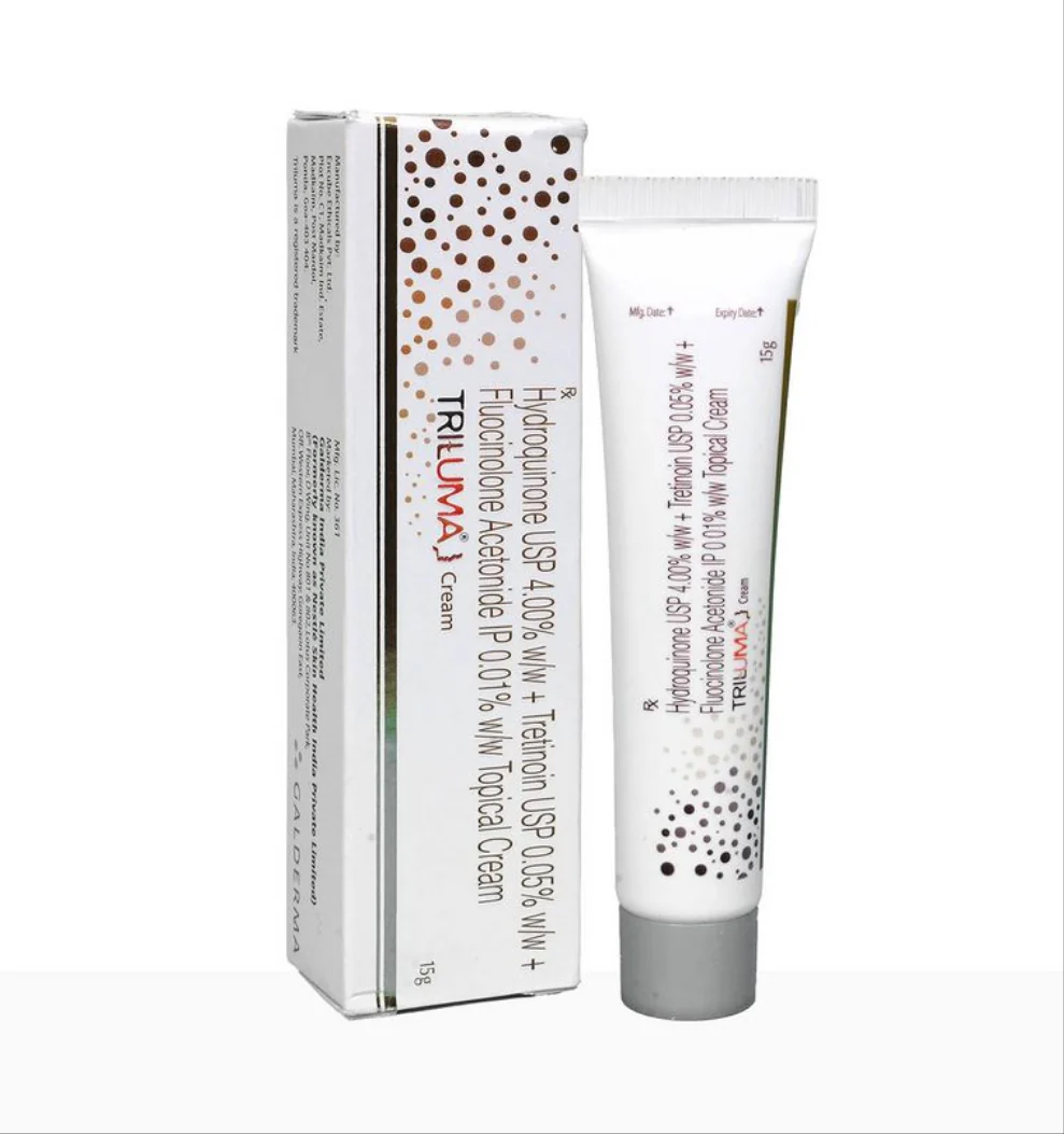 Triluma is a prescription-strength corrective cream specially formulated to fade stubborn hyperpigmentation, including melasma (brown or gray-brown patches), dark spots from sun damage, and post-inflammatory marks. It combines three potent actives in one balanced formula to target pigmentation at multiple levels, while helping improve overall skin tone and texture.